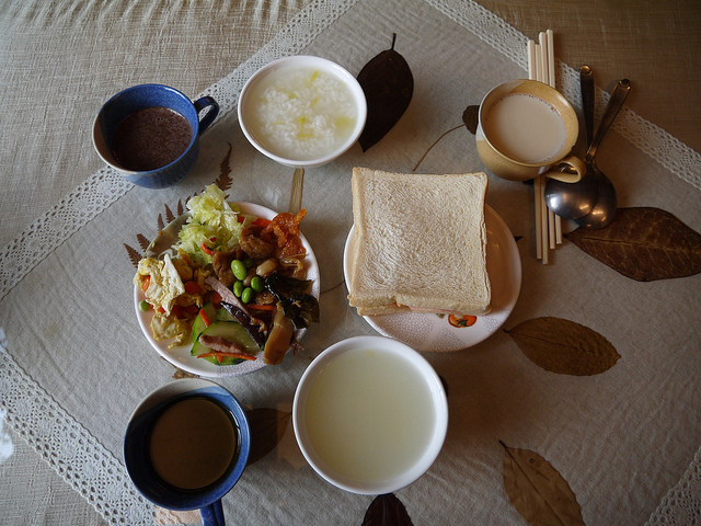 除了有西式的吐司,另外還有主人現炒的中式菜餚與地瓜粥
