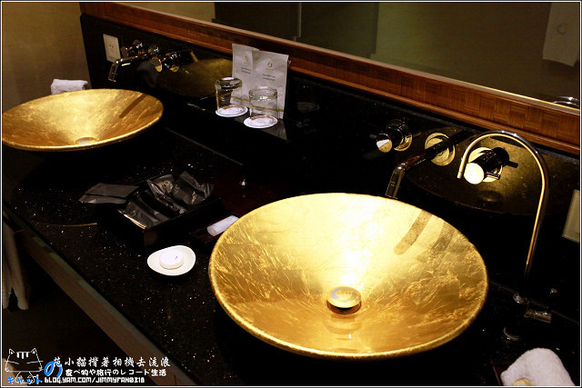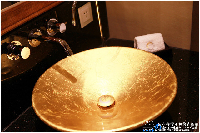 洗臉盆與飯店外黃金船桅一樣,也是使用999.9的金箔製做