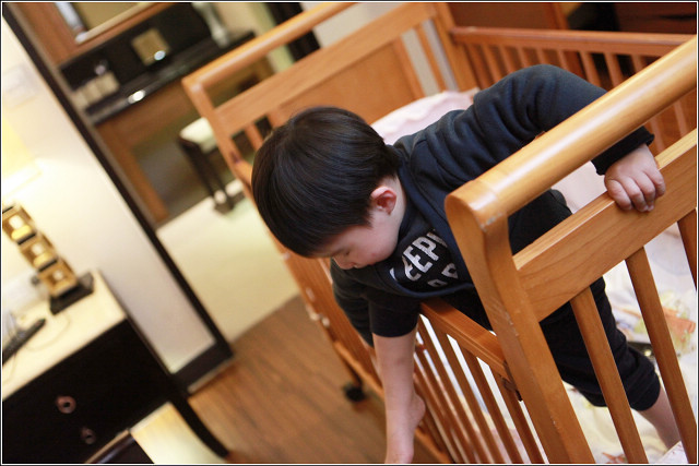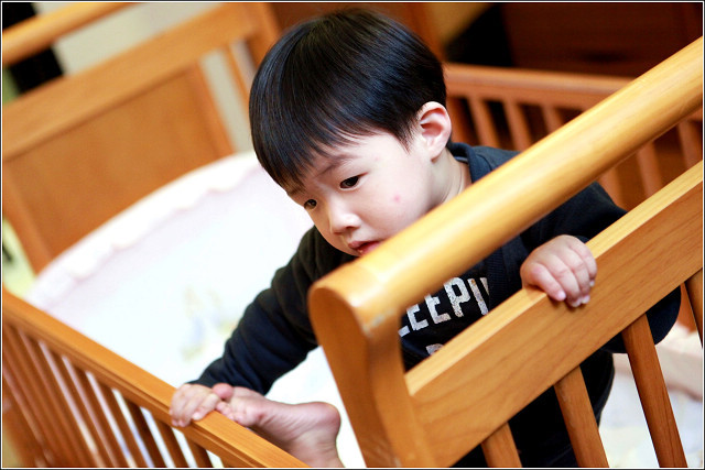 嬰兒床變成了控制這精力旺盛亂亂跑小傢伙的圍欄
