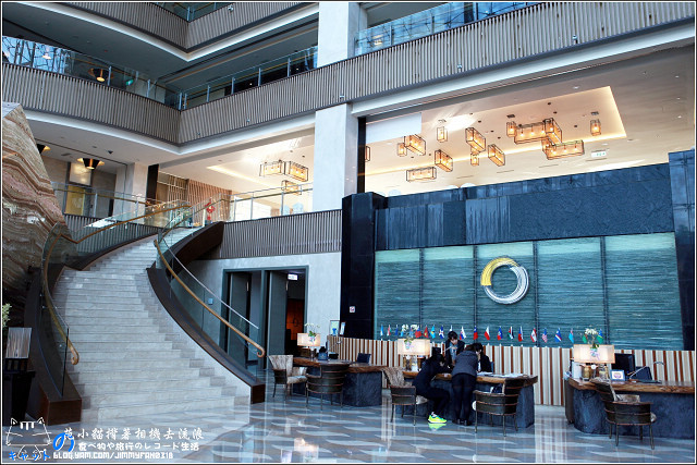 在接待大廳的櫃台與前往客房搭乘電梯的區塊以這個"大理石光牆"來區隔
