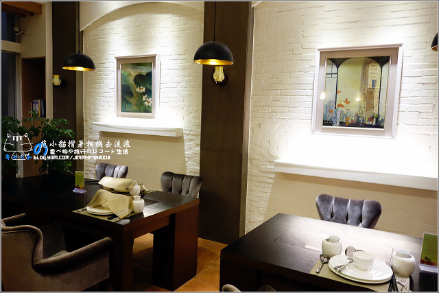 座位區後方一整片的白色磚牆很有法式風格與"綠芳園(竹北店)"的路線還滿像的