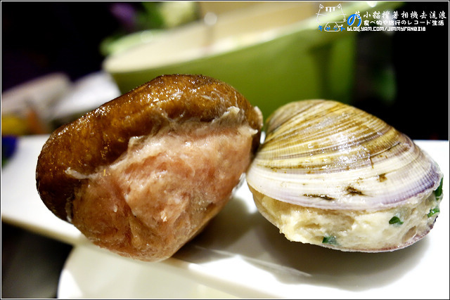 果真是充滿著創意,右邊的老蚌生珠還很功夫的把肉漿給填入蚌殼內