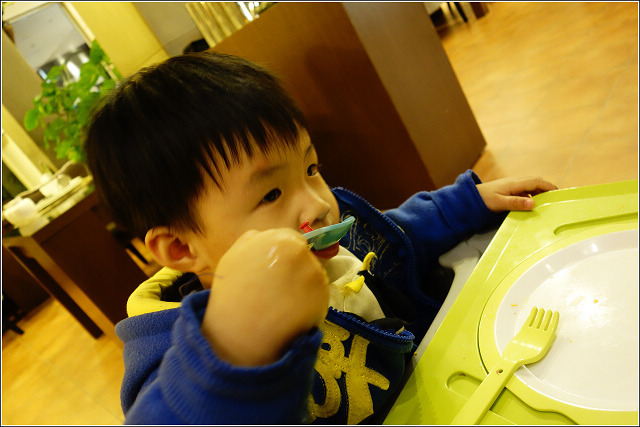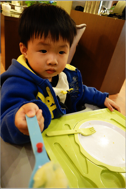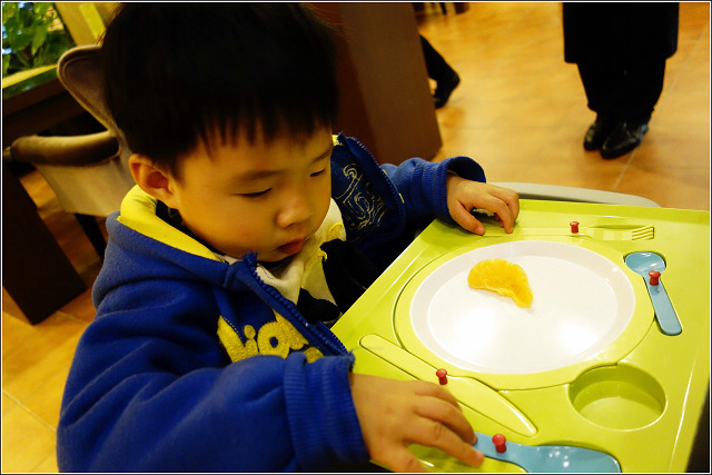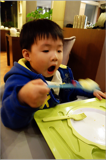 小蘿蔔頭看到這麼特別的餐具玩得可開心的
