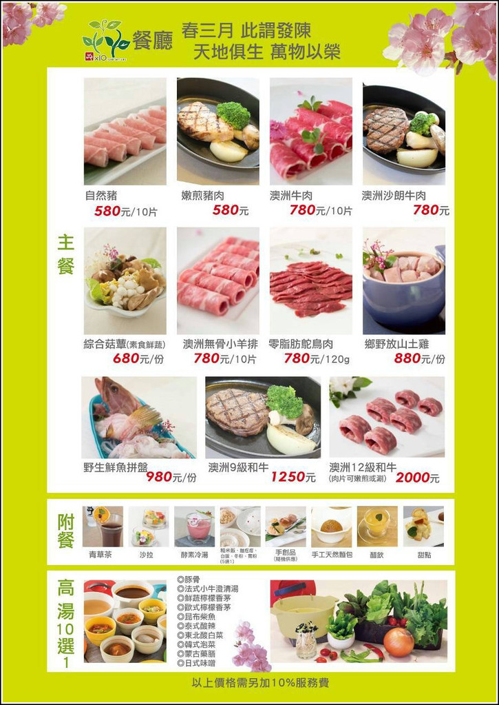 (註:兒童120cm以下免費,120-140cm未點餐,酌收有機葉菜、醬料與清潔費$150)