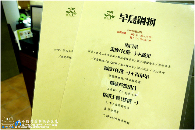 (早鳥鍋物優惠時段 11:30~12:30 / 17:30~18:30)