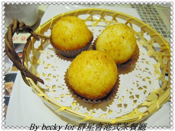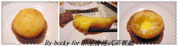 熱騰騰的貴妃球送上來後,店員還交待要小心燙舌,因為咬下後整個是奶黃餡是爆漿出來,外皮很Q軟,吃起來像麻糬一樣,裡面的奶黃餡甜味加上外皮略帶鹹味,二者吃起來意外的搭。