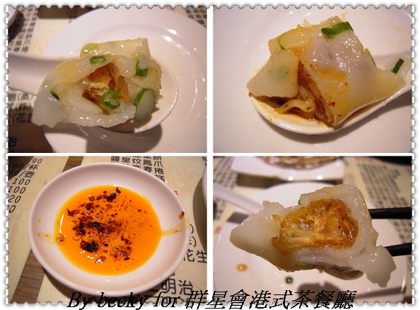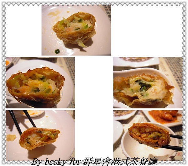 腐皮捲經過炸後的,裡面的餡還保留了其湯汁,並沒有乾乾的口感,蝦子還吃的到一整隻,裡面的高麗菜也很青脆,沾了辣醬後,味道又更提味了一層。