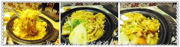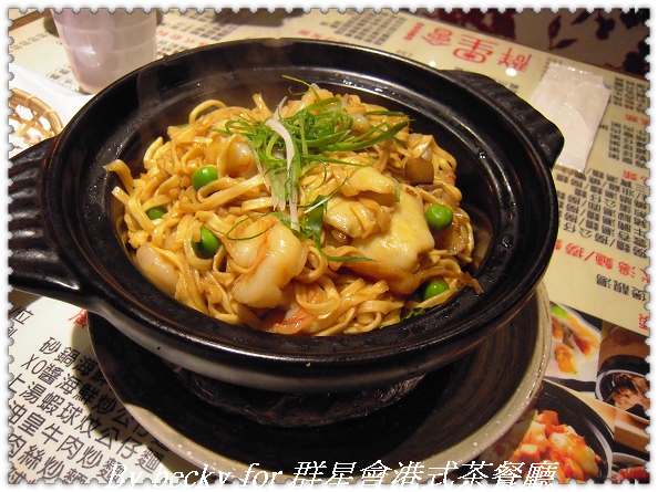 這道炒麵~意麵與蝦仁、魚片、花枝等等海鮮拌炒,用的是砂鍋,所以不怕上桌後會冷掉~麵條吃起來很有彈性,每一次撈都會有不同的海鮮,吃起來味道更顯豐盛,且冷掉也不會有油膩感,麵條還是很有Q彈,顏色看起來很深,但卻不會死鹹,這道我真的蠻喜歡的。