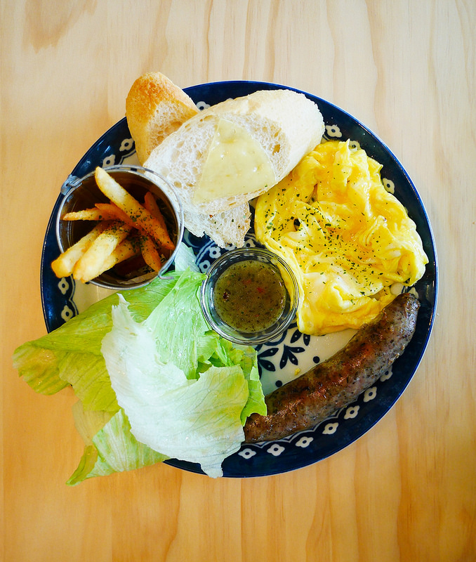 有法國手工香腸 法式嫩炒蛋 沙拉 炸薯條 麵包