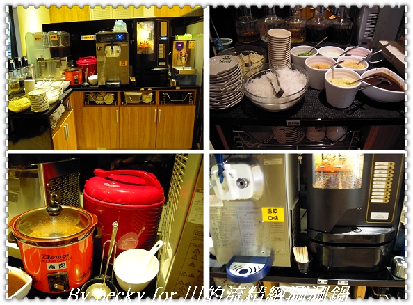 這是醬料區~除了醬料外,還有麵條及冬粉可以自己取用,另外也有滷肉飯,讓想吃飯的人也可以享用,旁邊則是咖啡機及冰淇淋機。