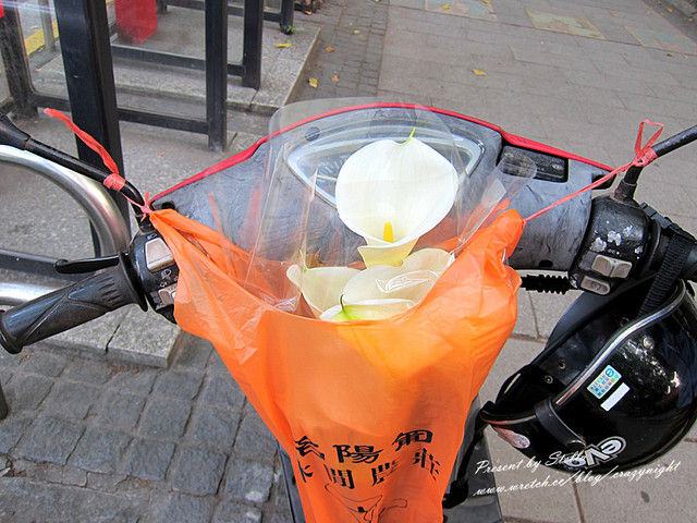 包裝去啦~老闆還撒米斯送我們一朵香水海芋唷!!開勳