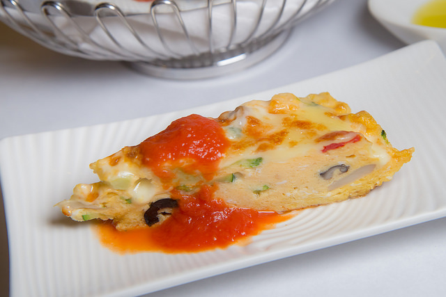 蔬菜烘蛋上面有番茄醬,感覺番茄醬不像是一般家用的番茄醬,
