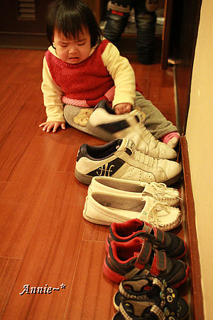後來發現圈圈會去玩鞋子,只好把它們收到衣櫃裡~
