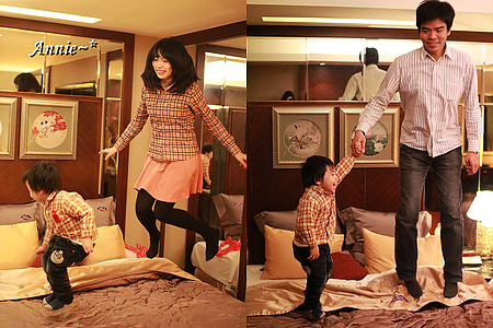 不顧澡還沒洗的髒腳攻擊,一定要和小睿一起跳床的阿!