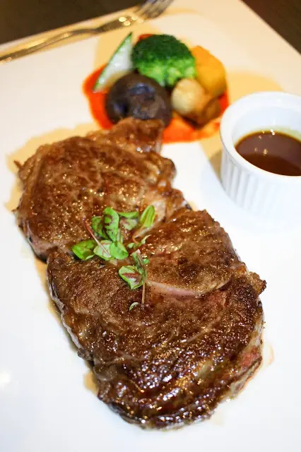 | | 這盤「皇家香煎牛排佐鵝肝慕斯」(澳洲牛)是姐接點的主餐… 主廚推薦是約7分熟… 但若還是比較愛吃軟嫩口感的人就可以選擇5分… 整體的擺盤相當可愛和趣味… 實在是不忍心動手破壞這畫面阿… |