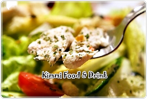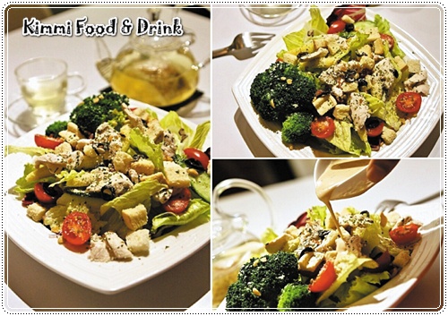 | | 接下來是「雞肉凱薩沙拉」(小份:165元/大份:280元)… 話說這沙拉還真是我有史以來見過最大盤的XDDDDD… 上面的雞肉超級飽滿,光用肉眼看就覺得超讚的>/////<… 淋上凱薩醬之後更是美味到一個極點… 對於不常吃菜的我們來說這盤實在有夠養生健康的呀… |