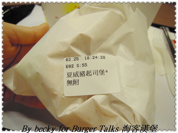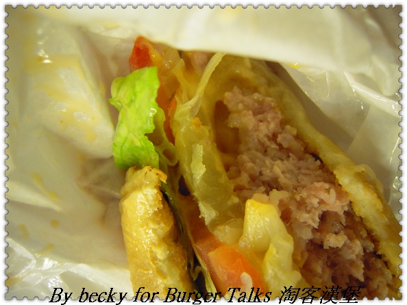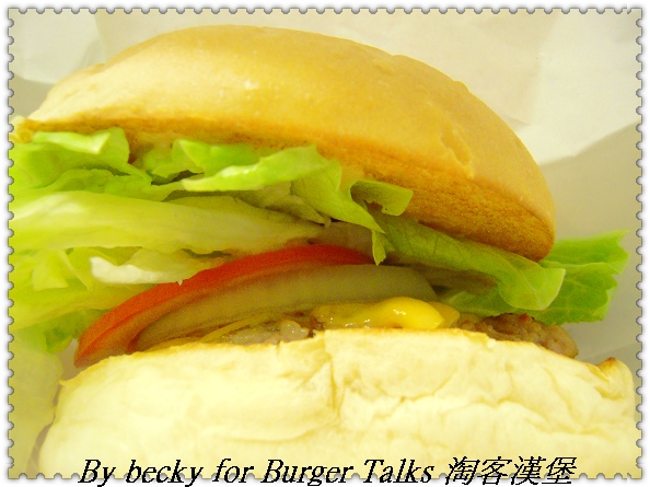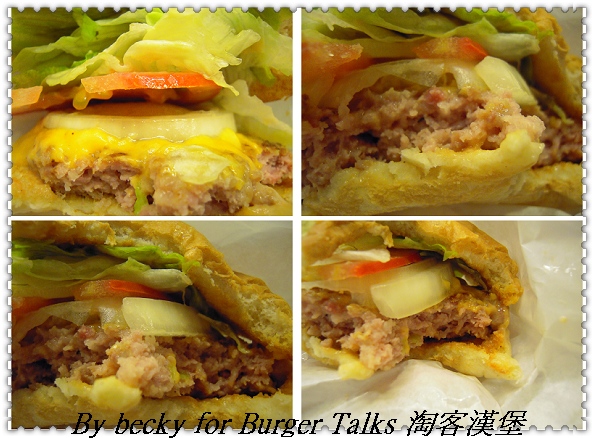 然後我吃的夏威夷豬肉起士堡,老闆說:他們的豬絞肉是用精密的機器絞成1分(一般都是絞成3分),連豬肉筋都切斷,所以肉汁還保留在肉裡面,所以吃起來很有juice感,肉質感也很好,不會因為煎過而變成乾乾的。