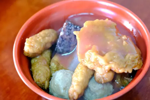 細扁油麵吃來偏軟,香菇丸也算普通,就是一般吃到的丸子,
