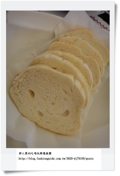 麵包有稍微烤過~ 但是卻沒有抹上大蒜或是奶酥醬