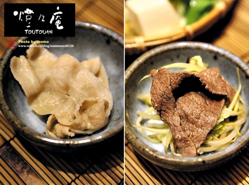 | 左邊是我已經過炙燒的熟魚片… 而右邊就是粉嫩粉嫩的生肪片原色… 不管是生食還是熟食我們一入口後都是發出「哦~好好吃」的聲音… 厲害的料理師傅就是這麼讓人讚嘆咩… |