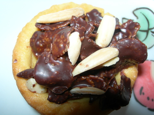 杏仁的脆ˋ焦糖醬的香濃味道,再加上牛奶巧克力玉米片的另一種脆度,