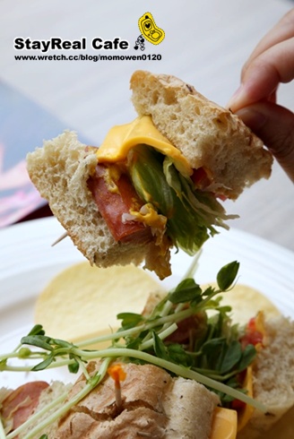 | | 鄉親阿!!來看一下這橫切面… llook!看那起司~那生菜~那德式香腸… 咳咳咳~麻煩服務生再送一盤吧XDDD… |