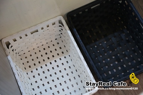 | | 就座前服務人員還會貼心的送上籃子讓客人放包包… 同樣是一黑一白的顏色跟StayReal 的主色系還真是搭耶XD… |