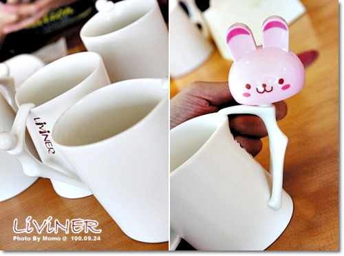 | | 桌上可愛的白色杯子… 配上我自已帶去的兔免頭整個畫面有夠爆笑的啦XD… |