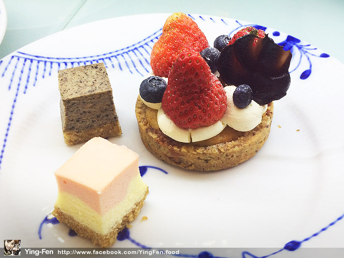 可以看到有個小冰櫃,冰櫃有擺放各式各樣的小甜點,每個都很精美。