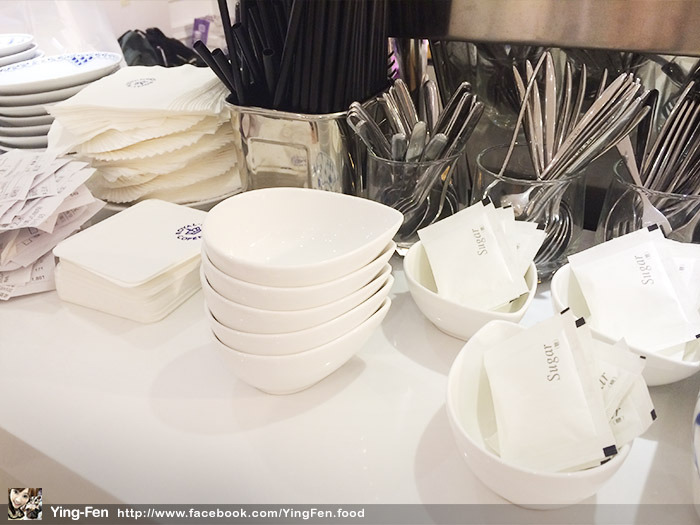 桌上的白開水,喝完後店員都會自動給水,另外有附濕紙巾,在店內用餐,可享用店家手工陶瓷餐盤。