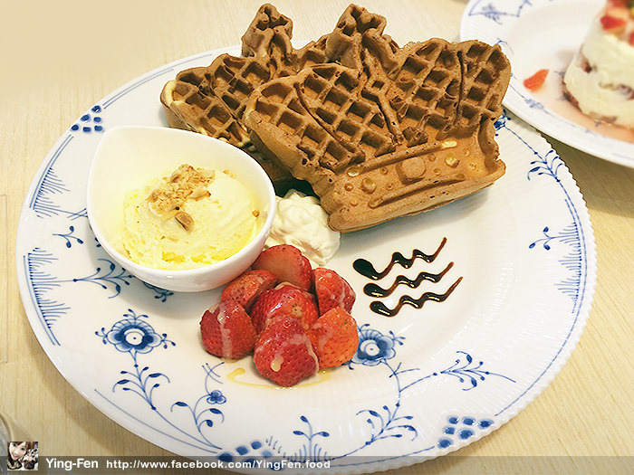 這是我把旁邊的料放在皇冠鬆餅上面,看起來是不是很美味呢!
