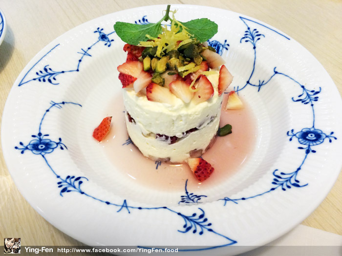 主廚推薦由新鮮草莓和香濃的白乾酪和鮮奶製成的,酸酸甜甜的味道,有著冰涼的口感。