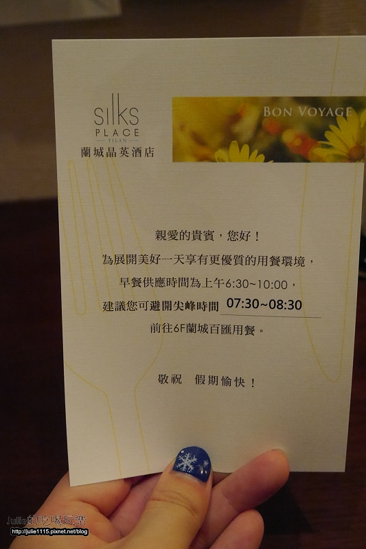 ↑然後連早餐時間都有貼心的提醒,假日住房率比較高,所以用早餐的人想必一定也比較多,所以適當的分流是必需的。