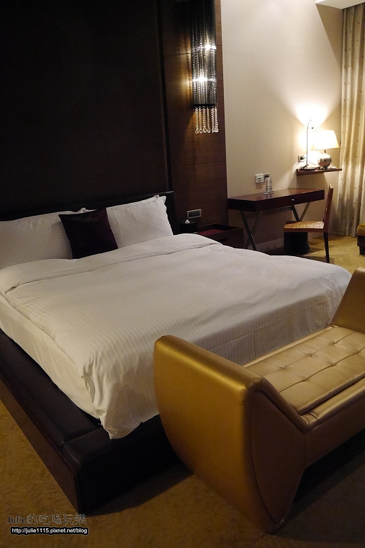 ↑看看這個大床,我超想撲上去滾床的啦!但畢竟不是我的房間,要稍微克制一下,哈XD