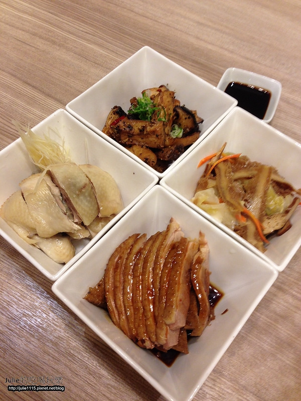 ↑雞肉的肉質稍微偏硬了一些些。有點像是鹽水雞的感覺,可以搭配一些薑絲一起吃。