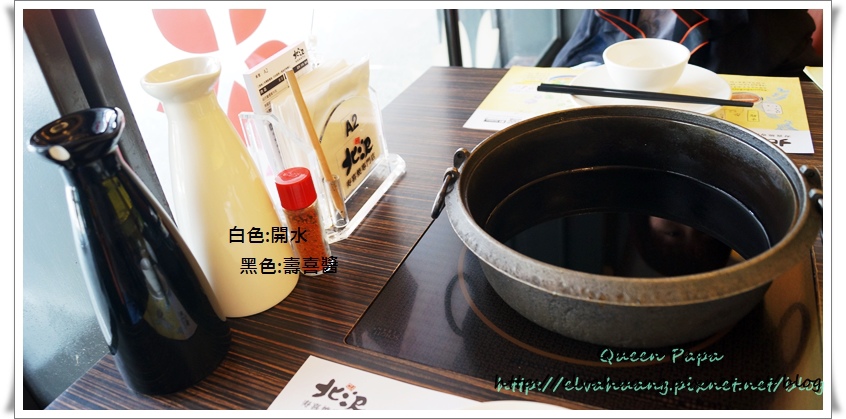 先看到眼前的東西...老朋友 黑白壺( 黑色是壽喜汁 白色是開水) 照片中鐵鍋 就是等下要來刷肉的..壽喜鍋!