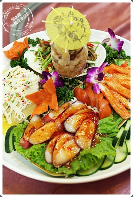 拼盤看起來就有比一般外界的拼盤來的精致許多了,除了撲上大量美生菜以外,再以小黃瓜圍盤擺飾,
