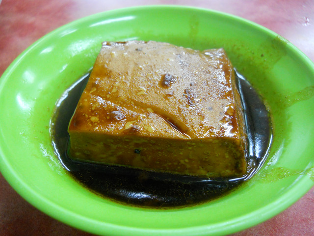 光看這筷子夾斷的橫切面就可以了解這豆腐的軟嫩程度,下面那烏漆嘛黑的淋汁,看起來很鹹其實並不會,但跟魯肉飯一樣味道偏重是事實,但正好補足了豆腐味道不夠的缺點。但千萬別以為淋醬會把豆腐的味道全蓋掉了哦,入口後輕輕一泯豆腐的清香還是會立即從鼻腔竄出。
