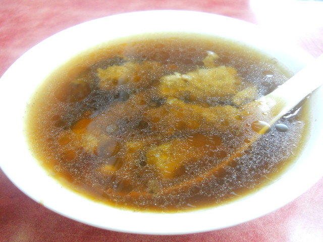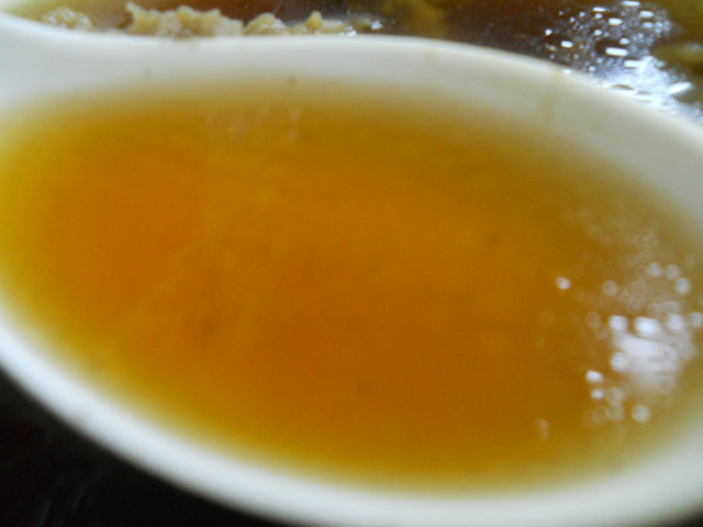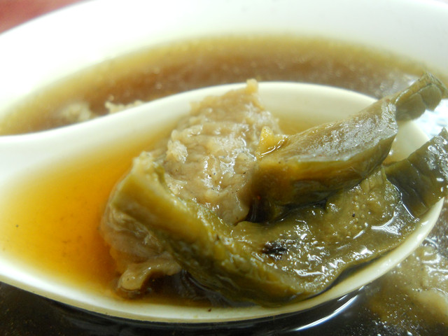 湯中主要的甘味來自於瓜仔,樣子有點像時候常吃的瓜仔罐頭,但這瓜仔的脆度遠遠不是罐頭所能比的,其甘甜的程度也是令人驚豔,就算其一半的甘甜早釋出於清湯內,但卻絲毫不影響其口感和甘脆,另外的肉羹是後腿肉混合適當比例的魚漿下去打的,因為打的夠勁,所以這肉羹咬起來相當的札實,口感十足,喜歡咬勁的朋友應該會很愛哦。