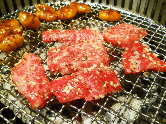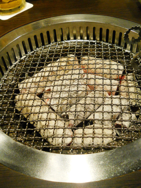 燃是用炭火烤肉的,不過這點沒什麼了不起,如此連吃到飽的也都用純炭火,至於燃是用那一種炭小虎並不十分清楚,至於上面的烤肉架服務生則是換的相當勤快,差不多是每烤一種肉就會換一張網,最少在鮮肉和海鮮類交換時一定會更新一張新的烤網。