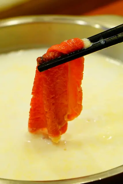 切成丁狀的杏飽菇吃起來有點微酸微辣,有彈性的口感是會讓人一下子就吃完的涮嘴。