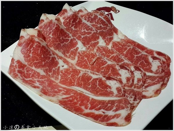 妳看看這頂級黑牛牛小排,均勻的大理石油花分佈..輕輕一涮就是好滋味