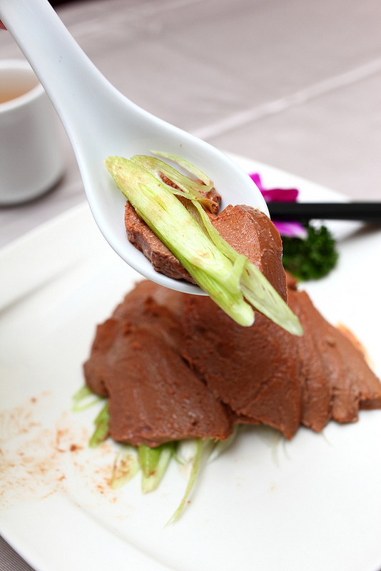 清脆甘甜的三星蔥更能突顯膽肝柔軟綿密,賦予這道菜餚更多層次的口感變化
