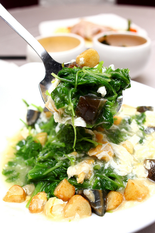 噴香撲鼻的迷人蒜香,溫泉杏菜入口順滑,與Q彈的皮蛋在口中交疊出層次口感