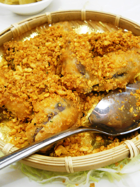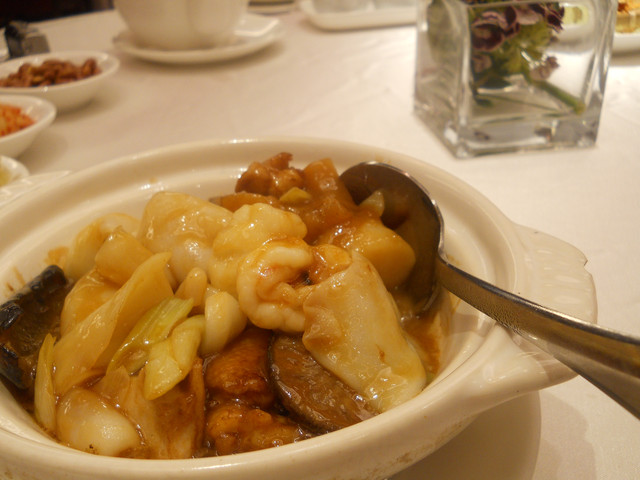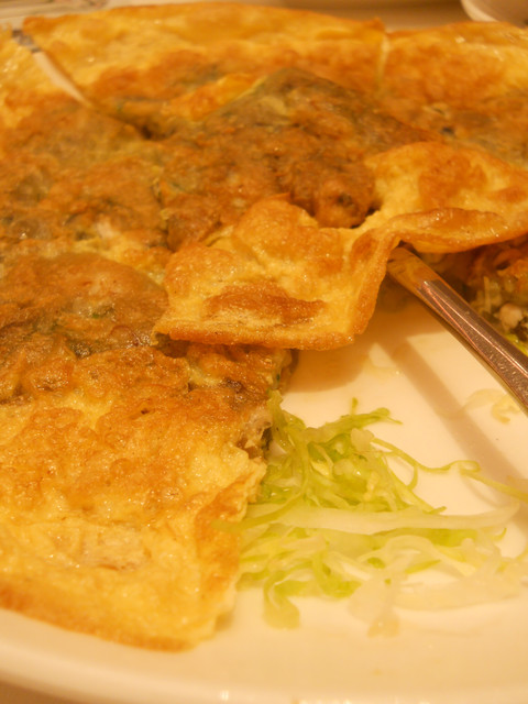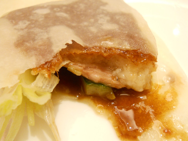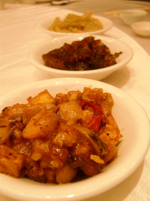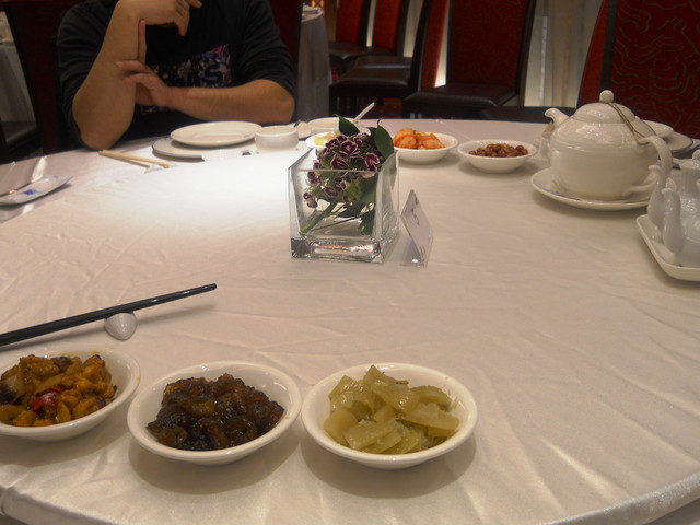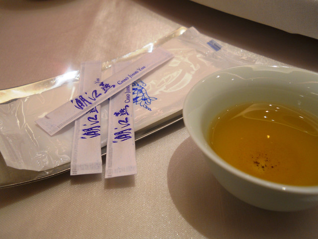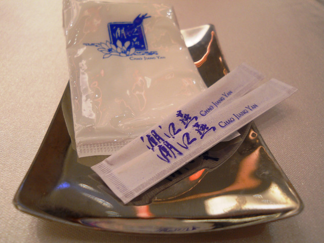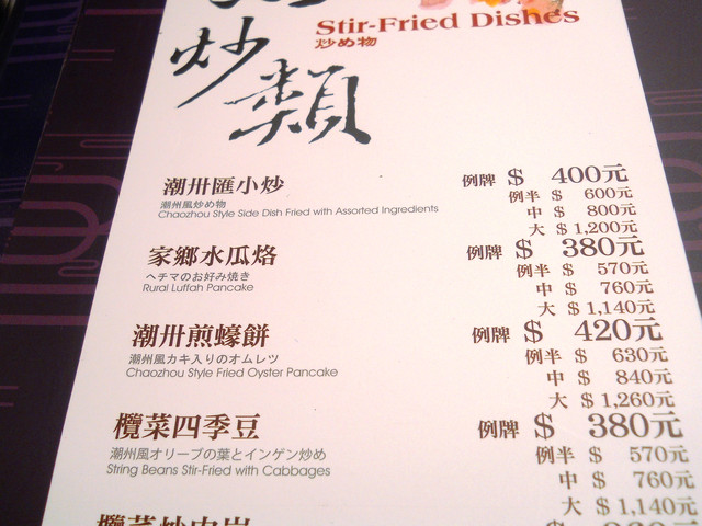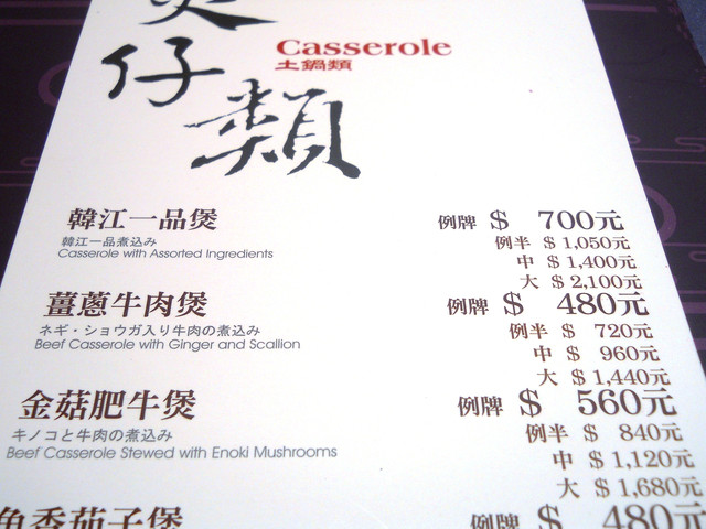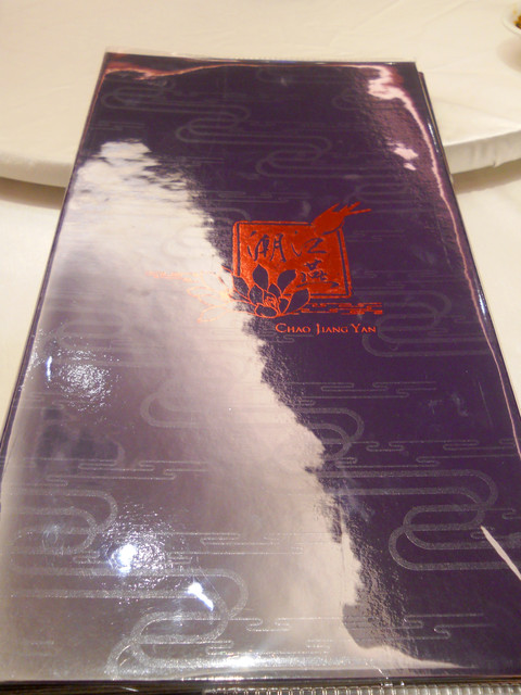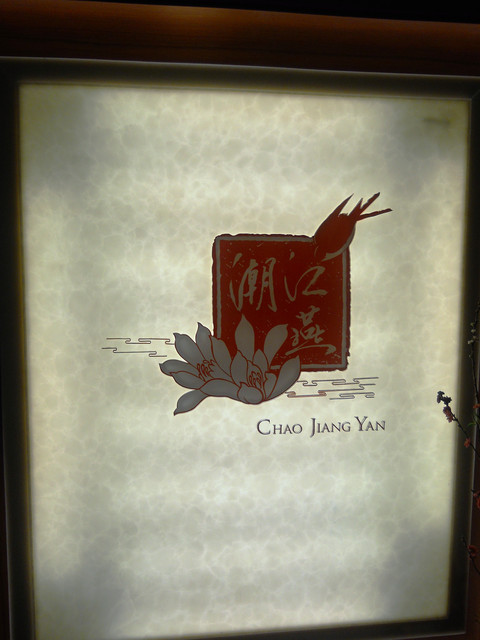 【南京東路站-潮江燕】推薦度:★★★★★☆(第二次破表,原因請看倌們慢慢欣賞)警告:「內文超長,照片超多,每看完十分鐘自行休息二分鐘,以免發生身體不適之徵兆,若有不適請撥:08987987987,有人接聽的話,小虎必然負起所有法律責任)。搞定這影片後,小虎自己看了一次,看的我是口水狂噴猛嚥!腦中的知覺、味覺、嗅覺全數回到五小時前的「潮江宴」上。原先小虎吃到翻旅行團都是固定於每個月五日後的第一個星期日舉辦,可是這回為了配合小虎在無名最好的朋友【王樣的38階食卓】超丸回國,所以特別提早一個星期,而這家潮江宴也是小虎一直想去的潮洲名店之一。今個算是一次了了兩大心願,一是吃了「潮江宴」,二嘛見到「超丸」,人生樂事也。這篇食記,為了感謝「超丸」大駕光臨,也為了歡迎她正式加入我們吃到翻旅行團,所以寫作方式稍有不同,為了營造小說般的效果,可能會有所誇大,但絕對忠於小虎心中所意。僅此獻給「超丸」。潮江宴地址:台北市慶城街1號3樓,就是緊臨捷運文湖線「南京東路」站出口那棟大樓(兄弟大飯店旁)。在介紹「潮江宴」時,小虎得先介紹一下我們這位新的團員「超丸」。她可是位傳奇人物,最少在小虎的眼中是如此。15歲就自個去澳洲唸書(這就不是一般小孩辦的到的),之後又去了英國唸書,然後再嫁去日本,這可是精彩的可以寫成小說了。老實說,今天小虎很混,還混很大!因為接下來沒有半張有關這間號稱花了數十億打造的「潮江宴」裡任何內部裝潢照片!!這兩張是我們大伙吃完後,小虎才突然想去都沒拍到餐廳內部才臨時拍的,然後小面鬼小虎又不敢再要求再進去拍,阿!!就!!所以~~請大家自己花錢去看看吧!。下面就一邊介紹「潮江宴」的菜色,一邊談談小虎眼中的「超丸」。光看這華麗的菜單光表,可能就得每個人付500當進場費,然後大伙看了半天的菜單,又把點菜的工作交給小虎,然後因為我也沒來過這等高級的餐廳用過餐,對潮洲菜更是一知半解,最後乾脆交給服務生介紹囉!所謂的例牌就是指正常的份量,也就是適合3到4人的份量,然後每多一個價位大於是多兩個人的份量,而此行我們是只有五個人,所以統一都點例牌,小虎心想這樣可以多吃幾道菜。談「超丸」前,小虎先從糗事談起。就在前一晚,小虎就不停思索明晚碰見「超丸」該聊些什麼?會不會找不到她本人等等鎖事,在床上輾轉難眠,就好像學生時代約筆友見面的前一晚,雖然那早是二十年前的