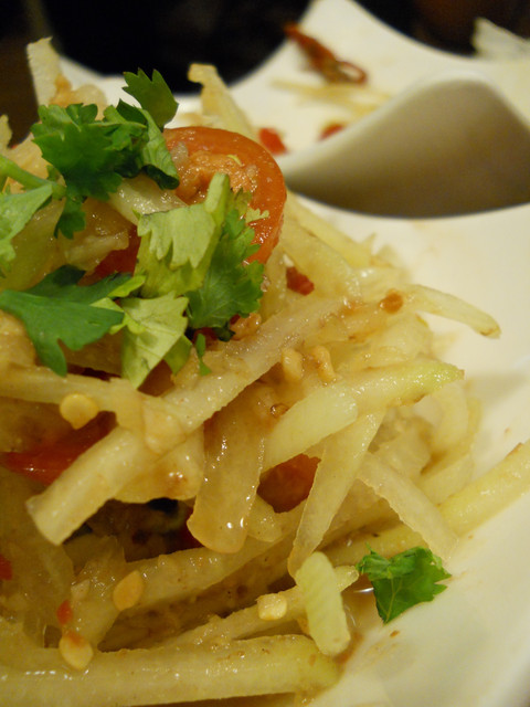 接著是小妹指名要點的「涼伴系列」,小妹堅持要點脆口的「木瓜」,這可苦了「虎媽」和「叔叔」這兩個牙口不好的,雖說小虎的牙口也好不到那去,不過這盤「涼拌木瓜」還在我咬得動的範圍內,這「涼拌木瓜」的味道其實和剛剛的「大薄片」相去不遠,只是其酸味較強了一點,辣度也稍稍高了一點,不過整體的口感和味道也都很不辣,這道是當晚二妹票選的第一名哦!。