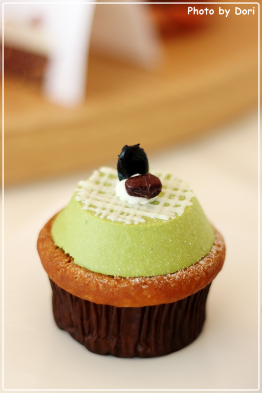 後味:在原味費南雪裡注入抹茶卡士達,整顆紅豆粒散佈其中,烘烤後糕體的抹茶味更加濃郁,呼應了慕斯的清爽抹茶香。