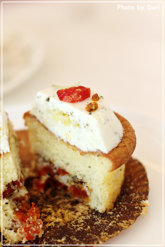 蛋糕下層為拌炒過的培根與風乾蕃茄,帶有著甜甜的香氣,看到杯子蛋糕被研發出不同的視覺與口味,感覺真的很棒。這就好像如果你熱愛料理,基本上也會對它有一定的堅持度。