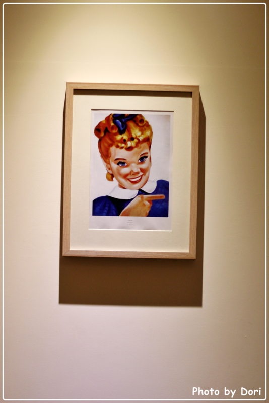 順便介紹一下店家的洗手間,它巧妙的隱藏在白色牆面的門後,一推開就能看見走道及這幅女孩的圖畫,重點是女孩還替你指引了方向,感覺挺有趣。