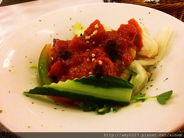 番茄醬汁嚐起來酸香開胃,裡頭似乎還加了一些梅粉